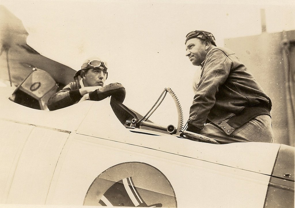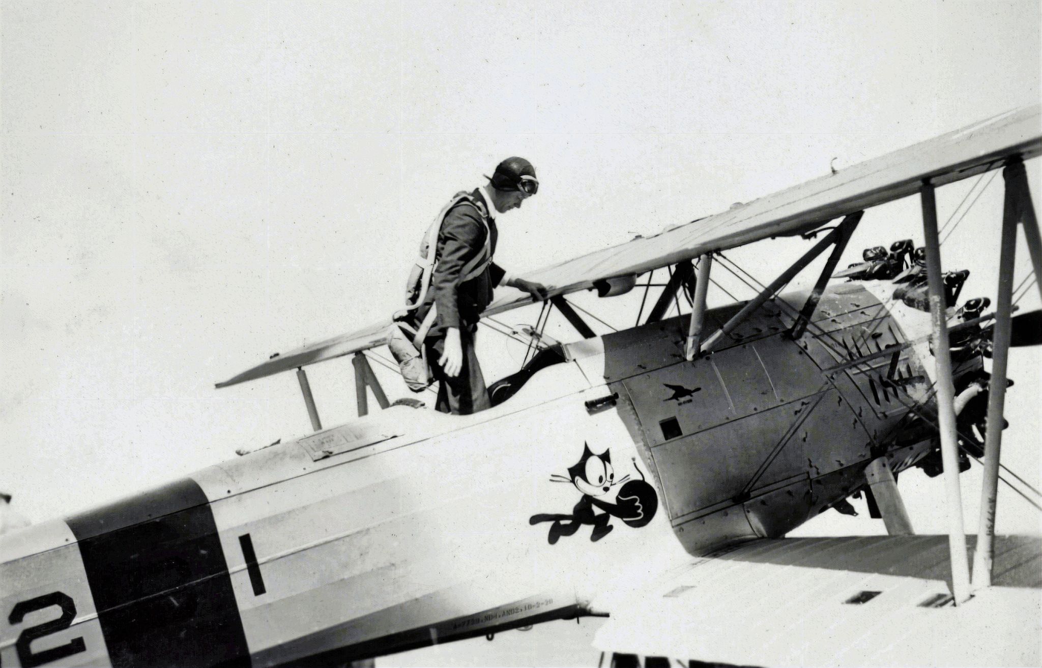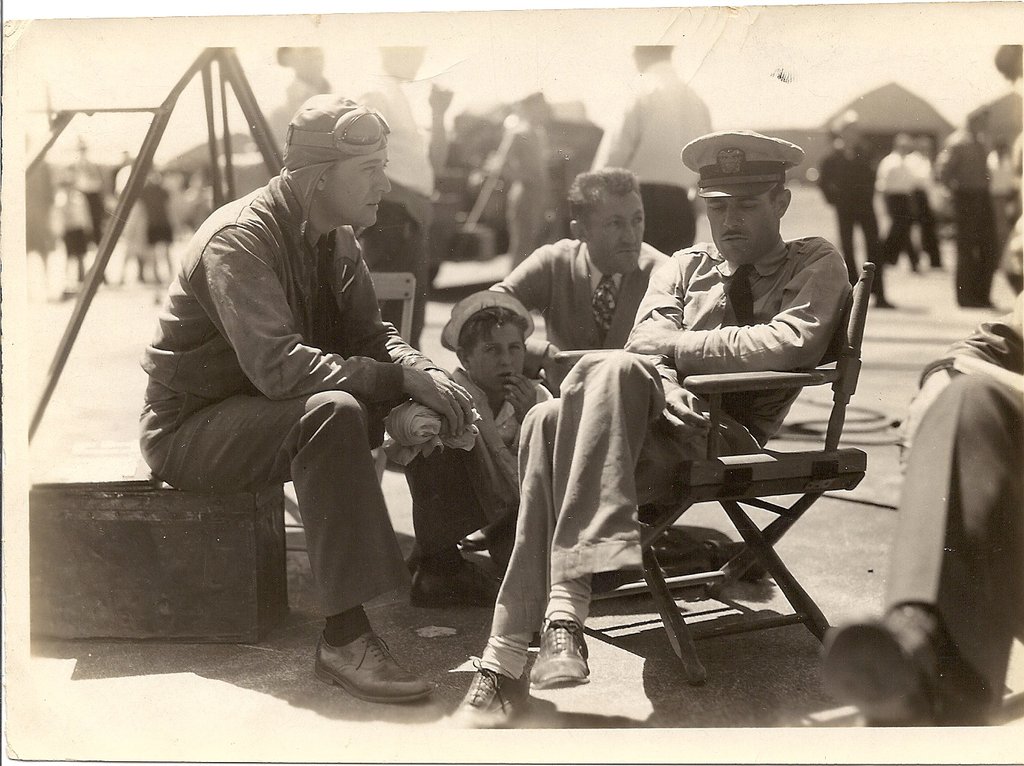 149k | Hell Divers is a Metro-Goldwin-Mayer film released in 1932, directed and produced by George Hill, with Wallace Beery, Clark Gable, Conrad Nagel, Dorothy Jordan, Marjorie Rambeau, and Marie Prevost. It contains real footage shot aboard Saratoga, and some film frames were censored by inserting black bars at the bottom, to hide details of the arresting hooks and wires—at the time, they represented cutting-edge naval aviation technology. VF-1B "High Hatters" pilots "doubled" for the actors in the flying scenes. NS020300: Theatrical release poster. NS020300a: Actor Conrad Nagel (left) and LT(JG) Herbert S. Duckworth, John's father. NS020300c: LT(JG) Edward P. "Bud" Southwick (left) and actor Wallace Beery (right, facing camera). NS020300d: (Left to right) Actor Clark Gable, LT(JG) "Jimmy" Thach, and John's mom. NS020300e: LT(JG) Edward P. Southwick (left) and actor Wallace Beery. Note the VF-1B "High Hatters" squadron insignia. NS020300f: (Left to right) Actor Cliff Edwards; LT(JG) John S. "Jimmy" Thach, later ADM; actor Clark Gable; actor (and USNR officer) Wallace Beery; LT(JG) Herbert S. Duckworth, later VADM; and LT(JG) Edward P. "Bud" Southwick, later RADM. They are standing by a Curtiss F8C-4 Helldiver aircraft of Fighting Squadron 1B, at Naval Air Station, North Island, California, 16 September 1931. |