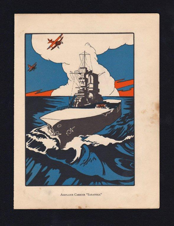 67k | "Airplane Carrier Saratoga." Edward Shenton American Aviation Art, Vintage Art Deco Graphic Art, Illustration Print, 1928. |