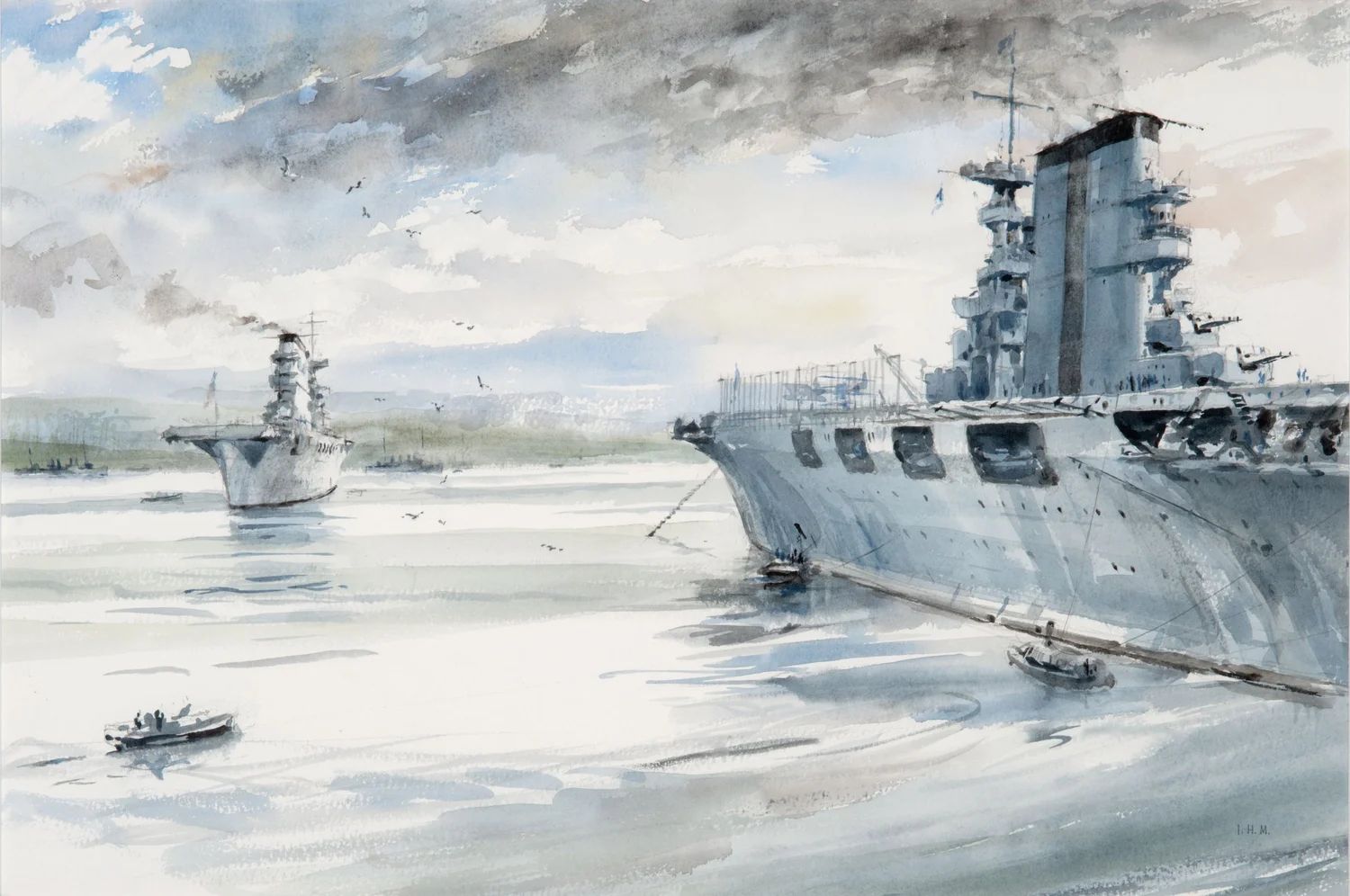 99k | Painting by Walter L. Greene, 1927, depicting the ship launching aircraft. Courtesy of the Navy Art Collection, Washington, DC. U.S. Naval Historical Center Photograph (# NH 42486-KN). |