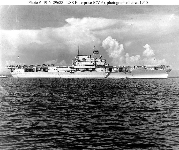 117k | USS Enterprise (CV-6) en route to Pearl Harbor, 8 October 1939. Photographed from USS Minneapolis (CA-36). Official U.S. Navy Photograph, now in the collections of the National Archives (photo # 80-G-13554). |