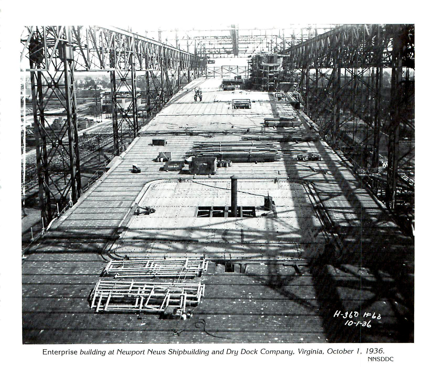 99k | The future USS Enterprise (CV-6) fitting out at Newport News Shipbuilding pier, 22 November 1937. |