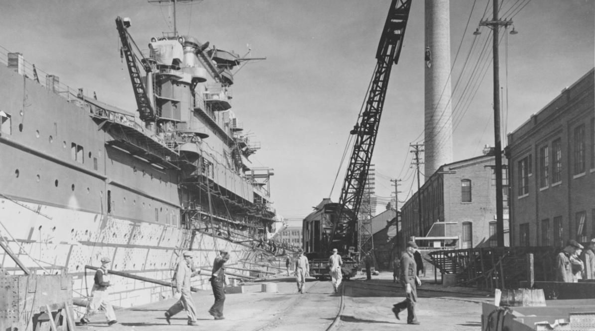 606k | Enterprise building at Newport News Shipbuilding and Dry Dock Company, Virginia, 1 October 1936. |