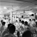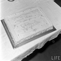 141k | Cake and celebration of the 44,000th landing aboard USS Enterprise (CV-6), made by Ensign Lloyd Thomas, USN, Torpedo Squadron (VT) 6, on 24 August 1941. Then LT(JG) Lloyd Thomas gave his life in his squadron's immortal attack in the Battle of Midway, 4 June 1942, and was posthumously awarded the Navy Cross for extraordinary heroism and courage in combat. Photos from the LIFE magazine archive. |