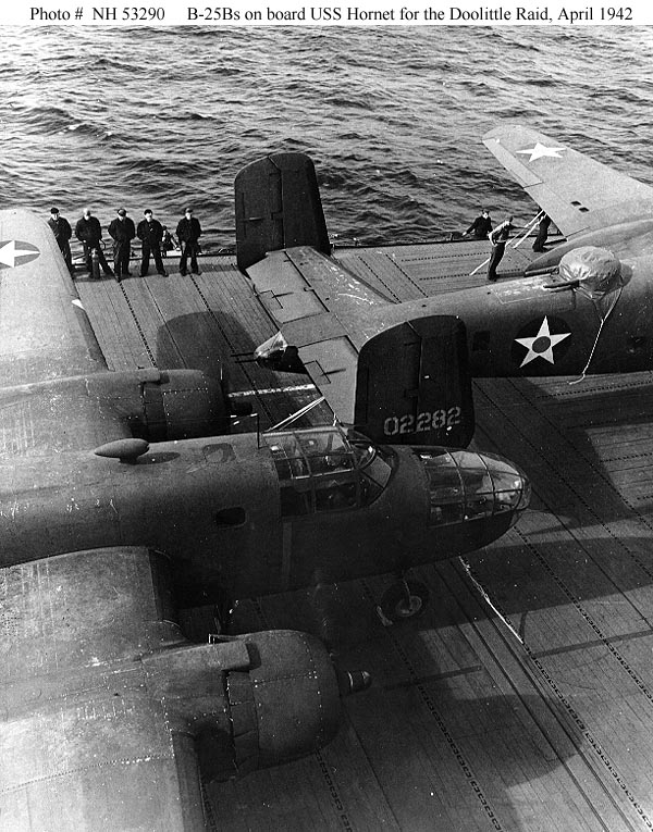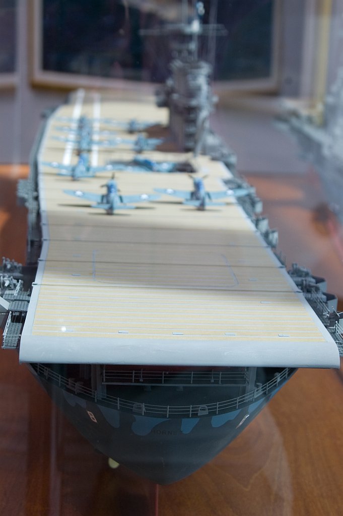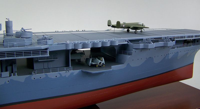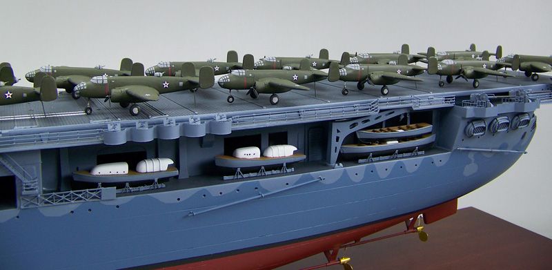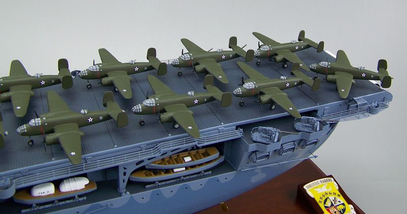 805k | Model of USS Hornet (CV-8), showing B-25B Mitchell medium bombers used for the Doolittle Raid on Japan. |