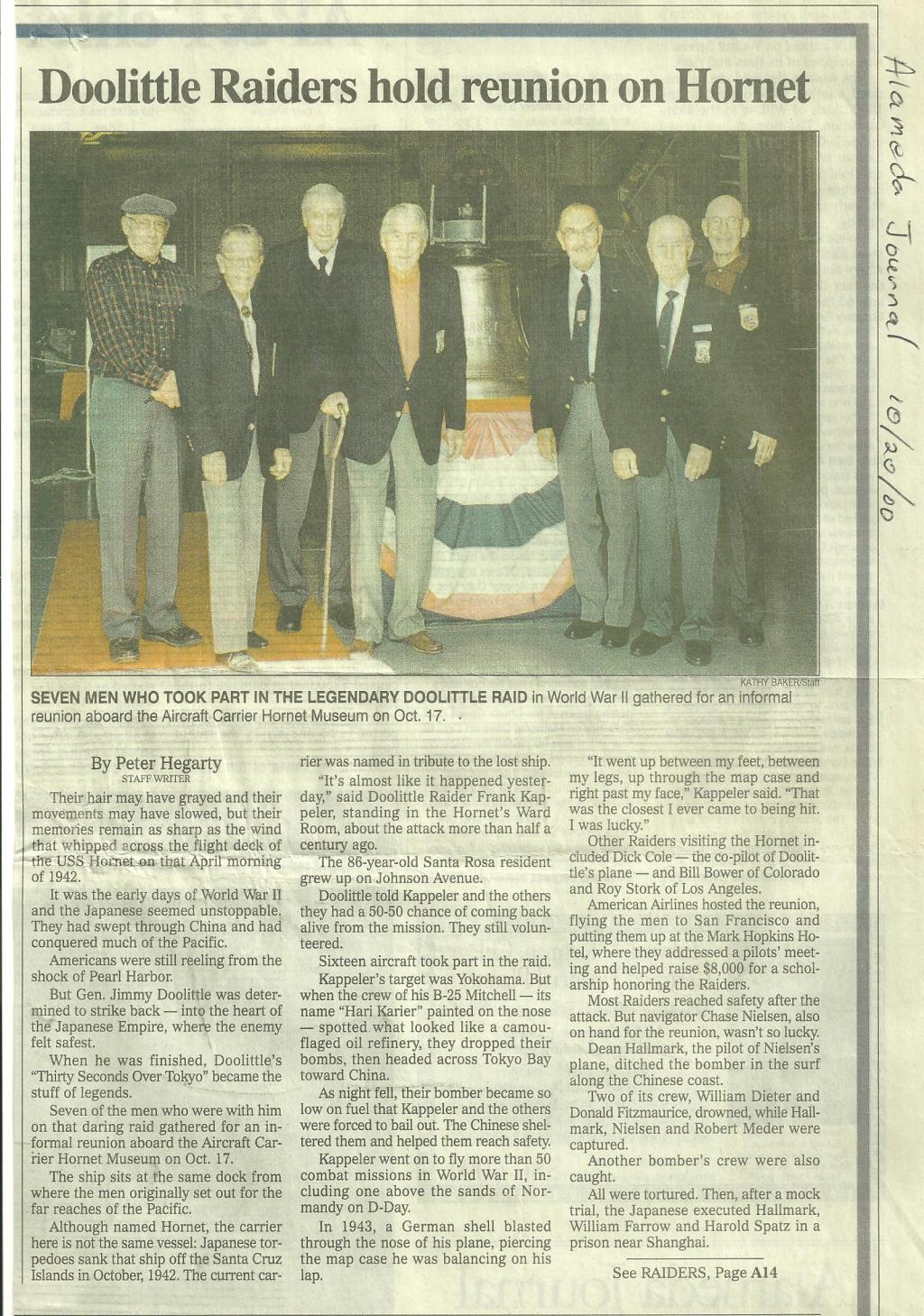 airmen and Marines, who took part in the Doolittle raid in April 1942, were officially recognized for