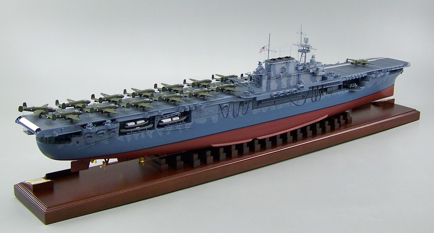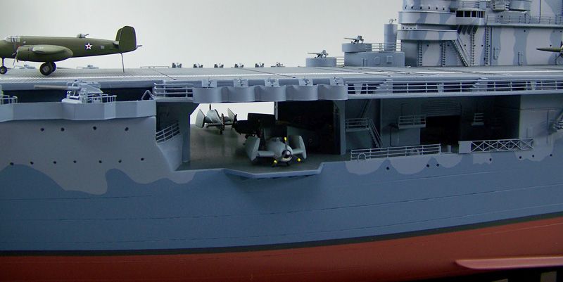 104k | This is a 60" model of USS Hornet (CV-8) at the time of the Doolittle Raid, April 1942. All B-25s are numbered correctly and there are F4Fs in the hangar. |
