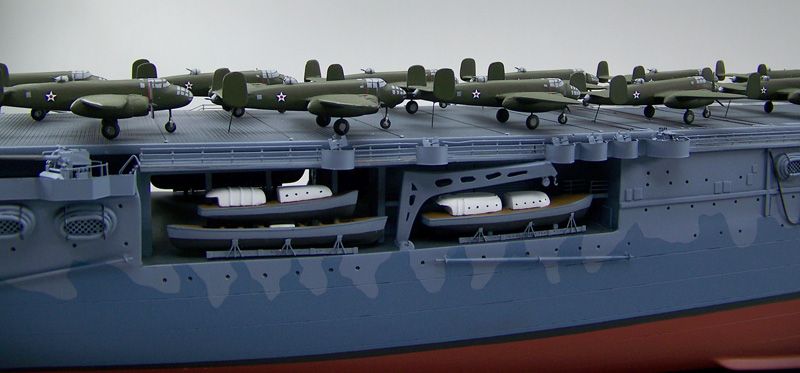218k | This is a 60" model of USS Hornet (CV-8) at the time of the Doolittle Raid, April 1942. All B-25s are numbered correctly and there are F4Fs in the hangar. |