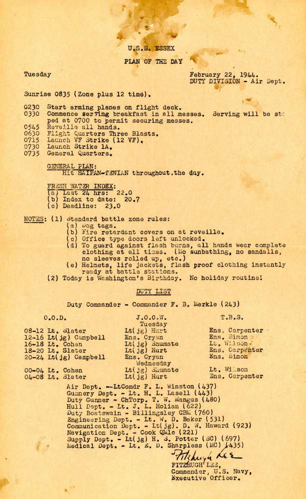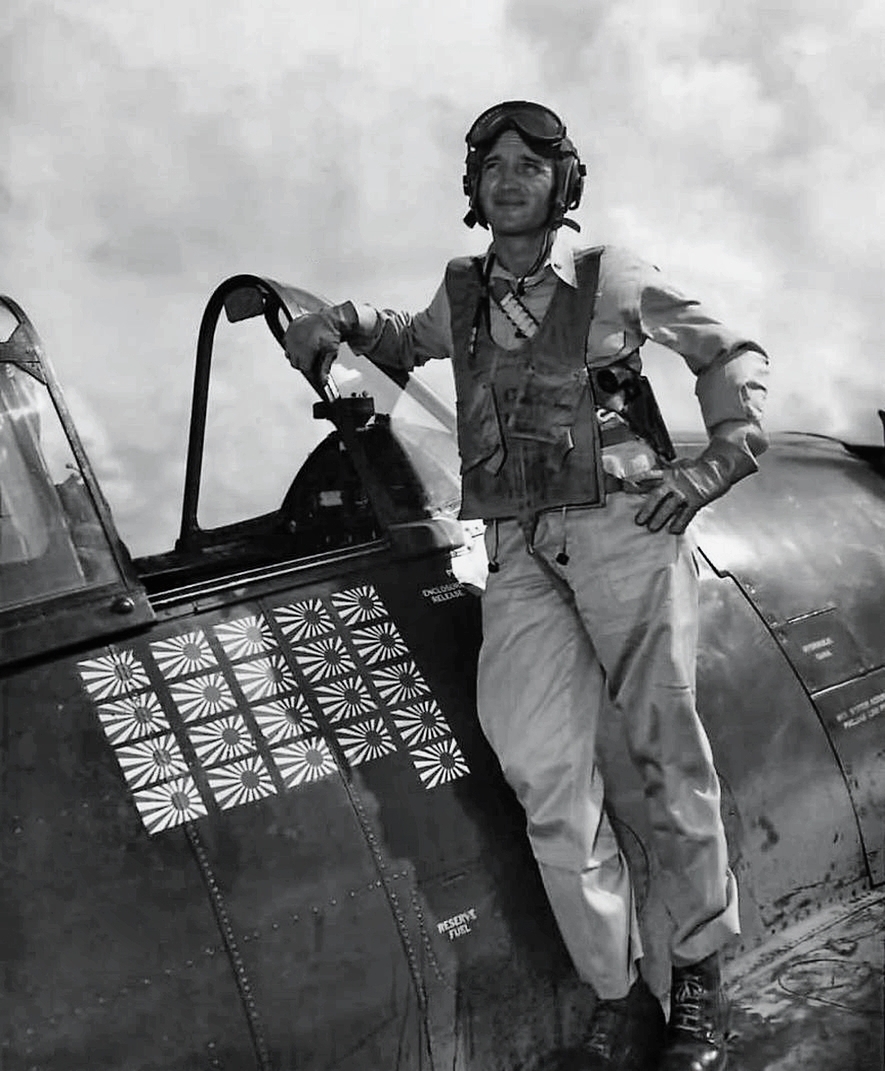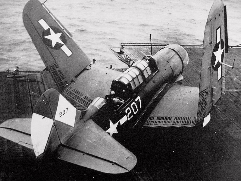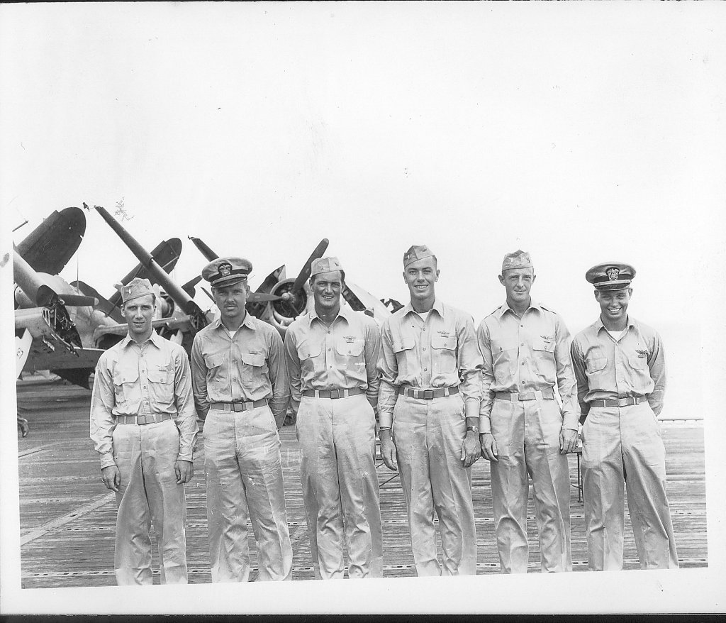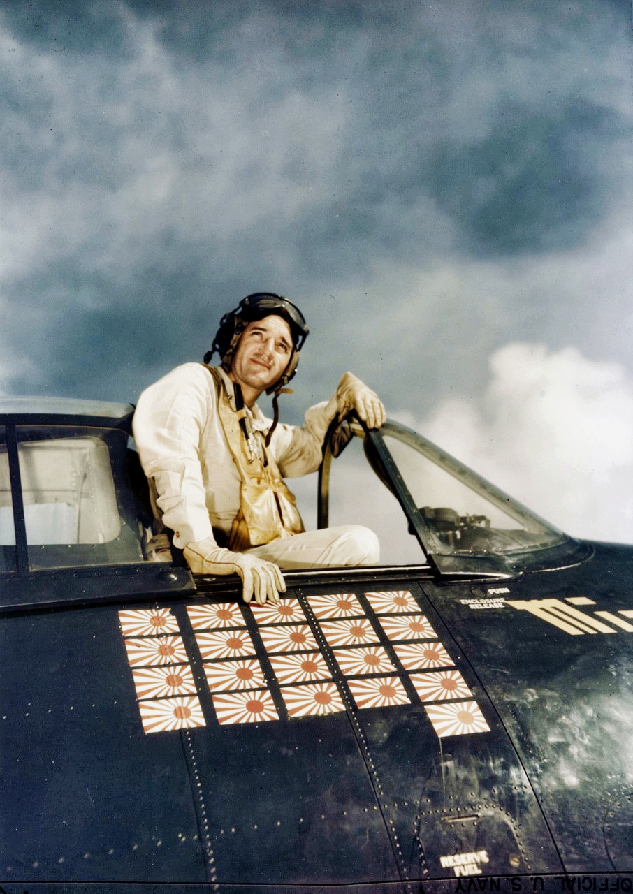 390k | Commander Fitzhugh Lee prior to first take off from USS Essex (CV-9), 16 February 1943. Official U.S. Navy Photograph, now in the collections of the National Archives and Records Administration (NARA), # 80-G-228006. |