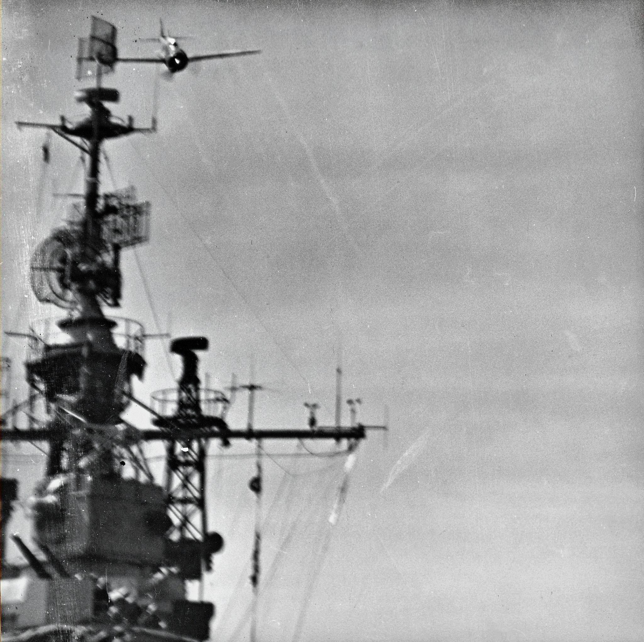 161k | As seen from USS Essex (CV-9), USS Astoria (CL-90), USS Randolph (CV-15), and other units of Task Force 58 steam in the Pacific, circa May 1945. Carrier in the background might be USS Bunker Hill (CV-17). |