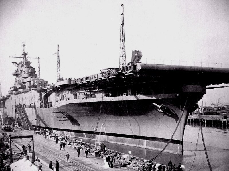 91k | Essex just after launch, July 31st, 1942 at Newport News Shipbuilding. |