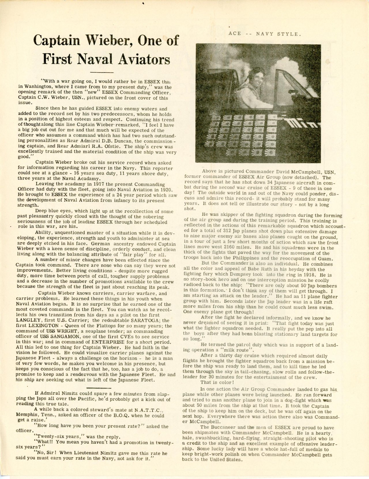 553k | The Essex Buccaneer, 8 December 1944. Articles on CAPT Carlos W. Wieber and CDR David McCampbell. |
