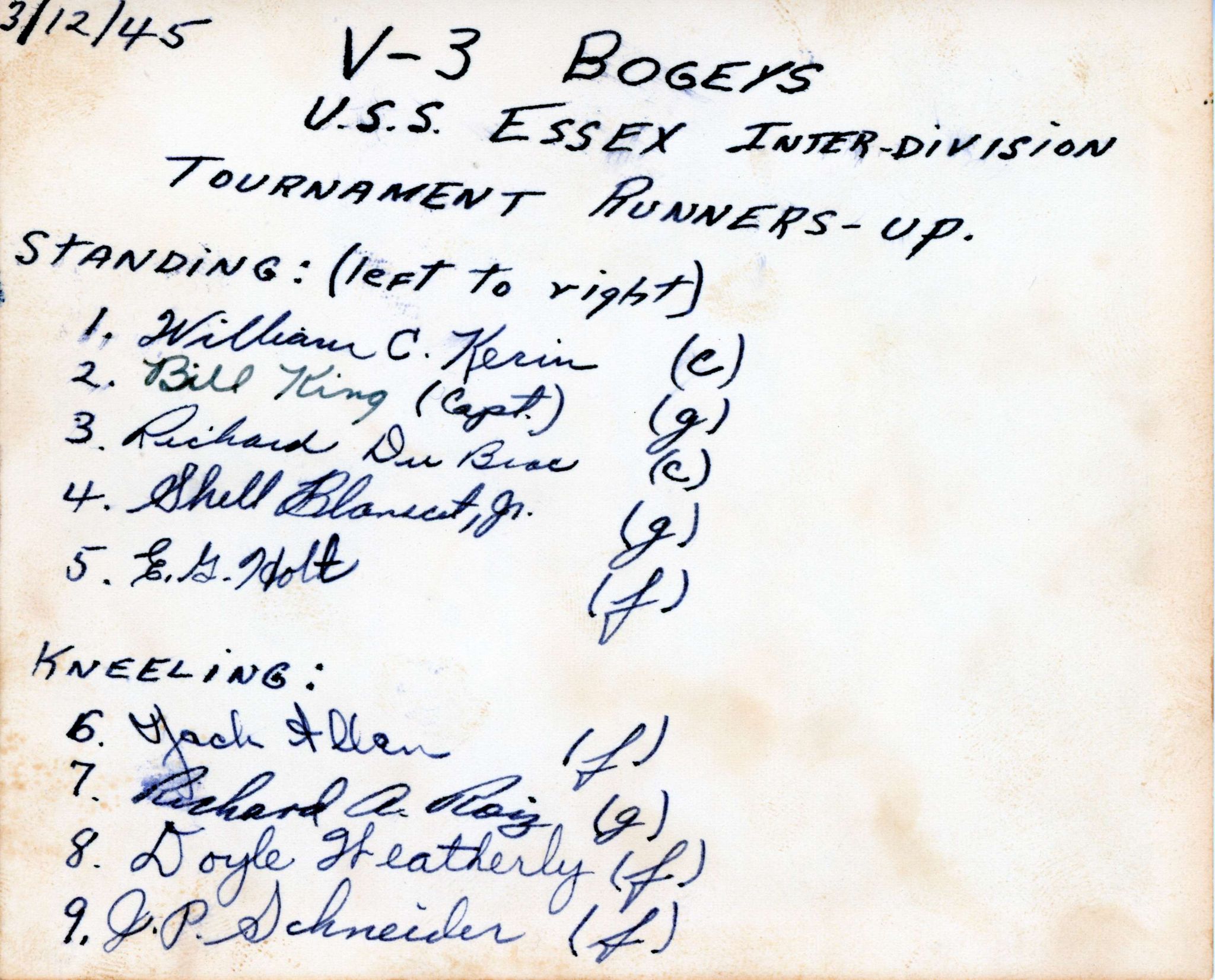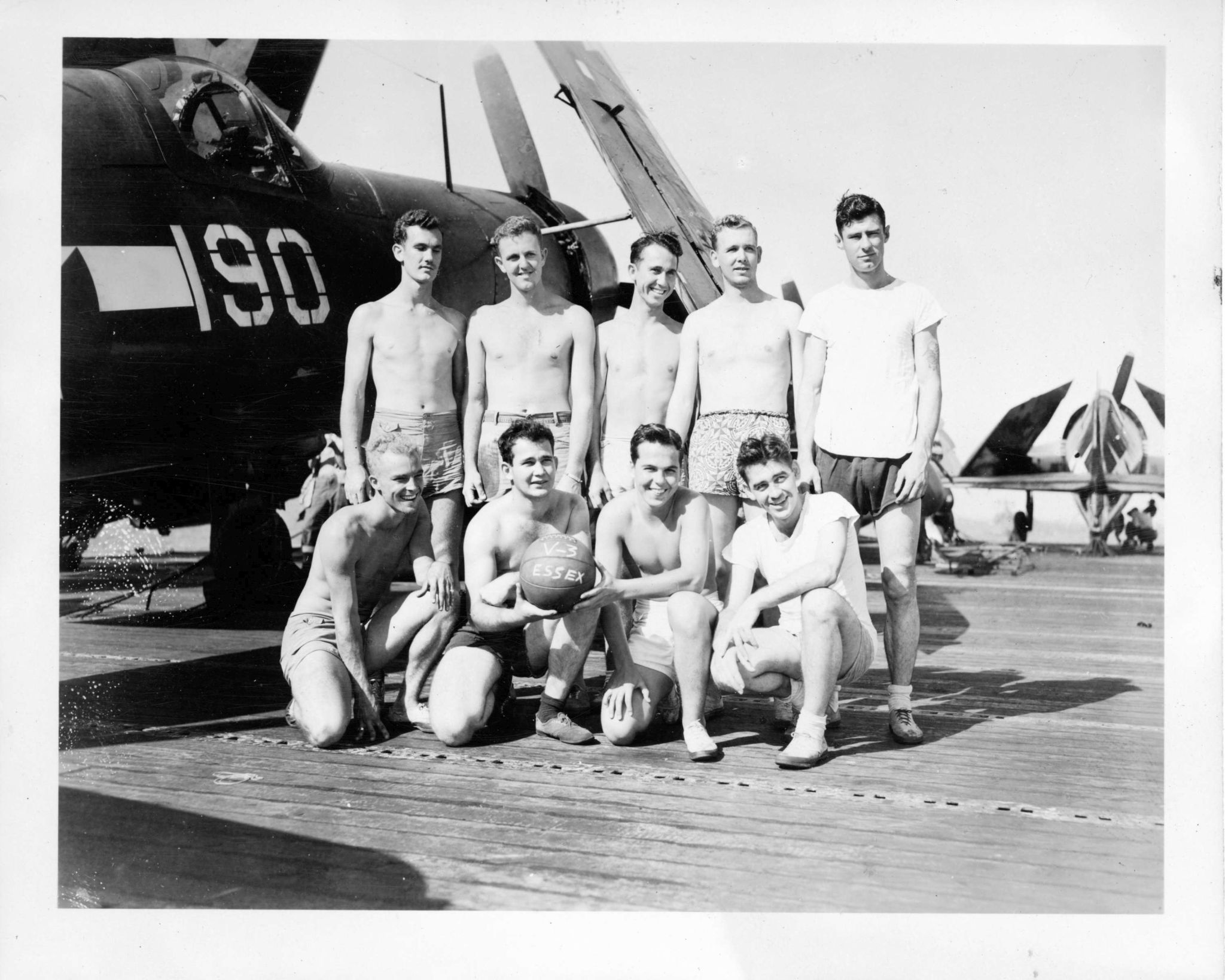 409k | USS Essex (CV-9) V-3 "Bogeys," 12 March 1945. (Note, however, that the envelope enclosing the photo gives the date as 11 March 1945.) |
