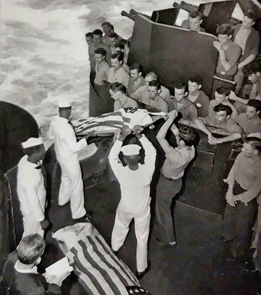 442k | Burial at sea of men killed in the 25 November 1944 kamikaze attack. |