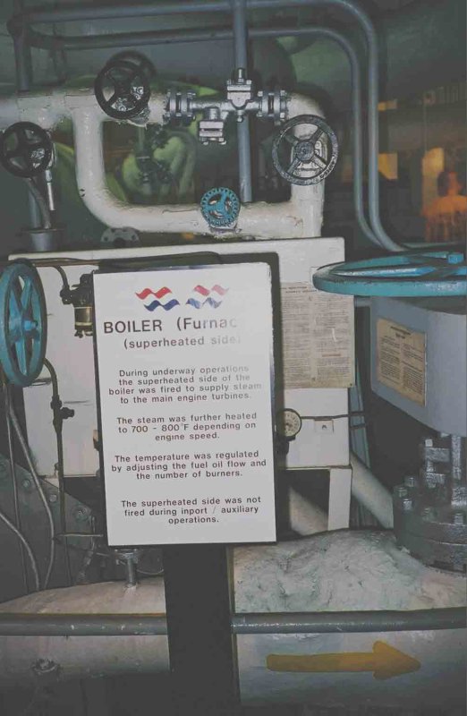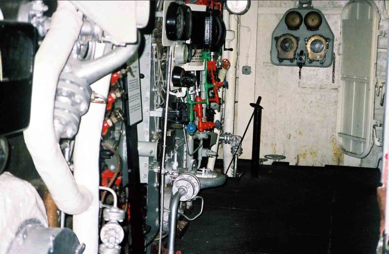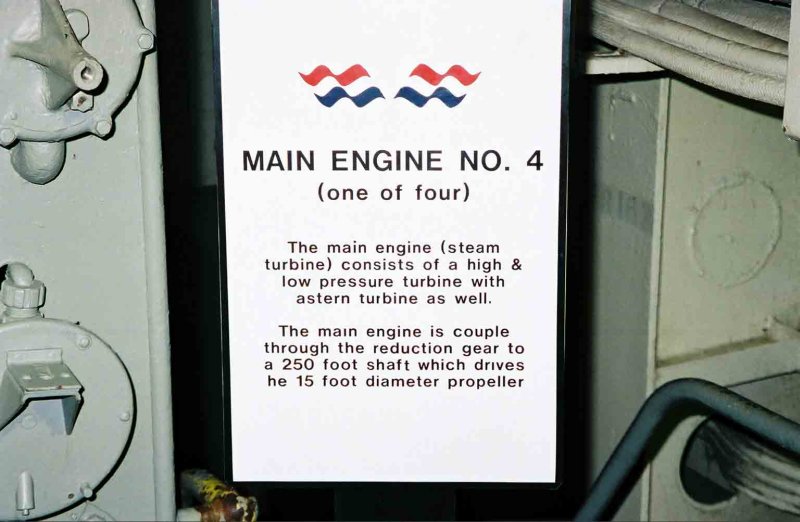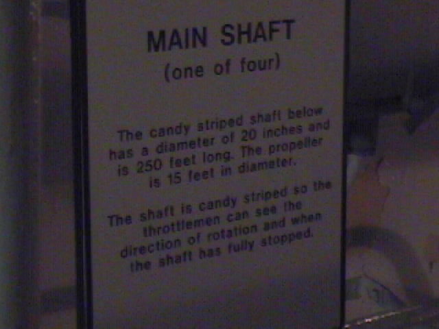 250 feet long. The propeller is 15 feet in diameter. The shaft is candy striped so the throttlemen