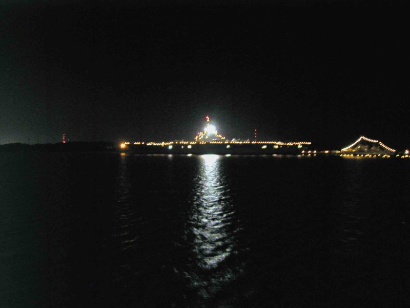 USS Yorktown at night. USS Laffey (DD-724) to the right.