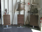 Main shaft (one of four). The candy striped shaft has a diameter of 20 inches and is