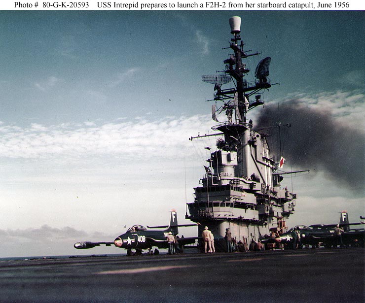 190k | USS Intrepid (CVA-11) underway with Carrier Air Group (CVG) 6 embarked, circa 1959–61. Atlantic Ocean, Caribbean, or Mediterranean. |