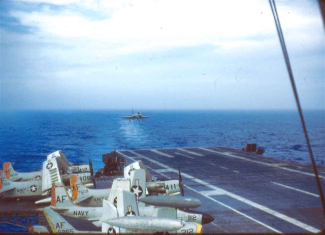 39k | An AD-5W Skyraider of VAW-12 "Bats" landing on USS Intrepid. |