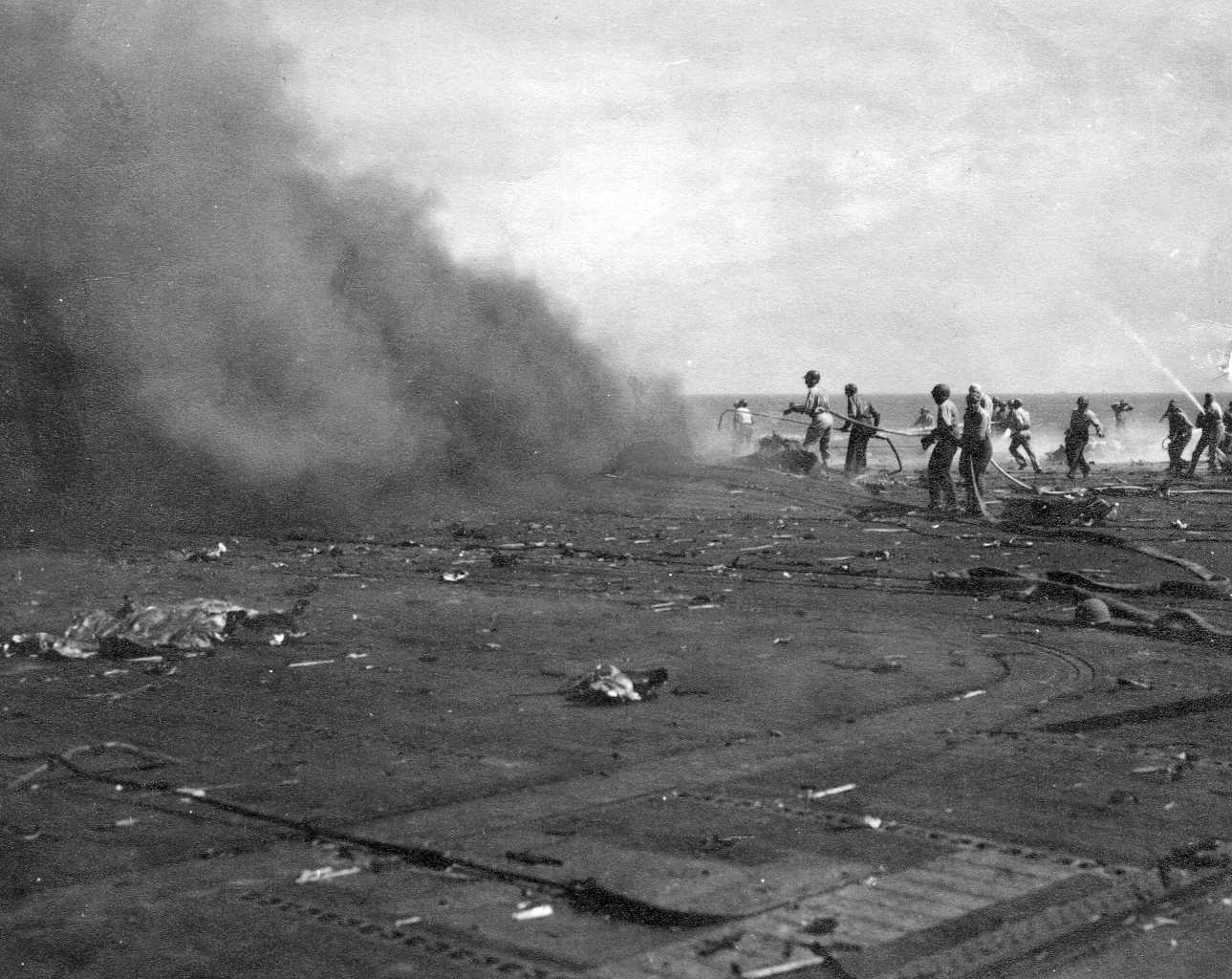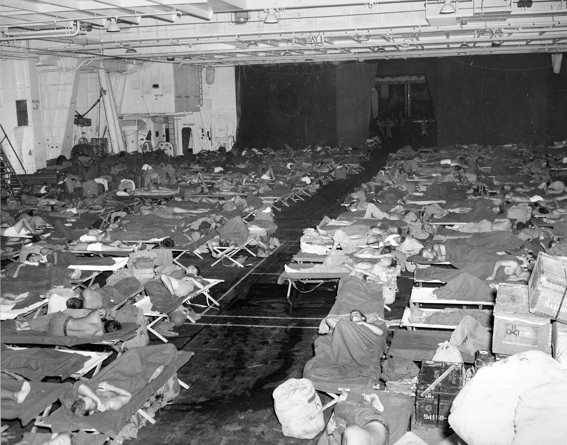 223k | "It is not all work for the men of the USS Intrepid (CV-11). Sun bathing on the flight deck." Photo is dated 18 February 1944 but this might be incorrect, since the ship was torpedoed on the 17th. National Archives and Records Administration (NARA), photo # 80-G-227167. |