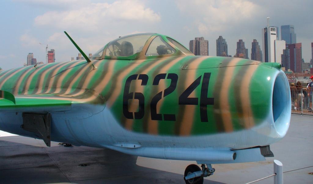 73k | Soviet MiG-15 (NATO code: Fagot), painted in the colors of the North Korea Air Force. |