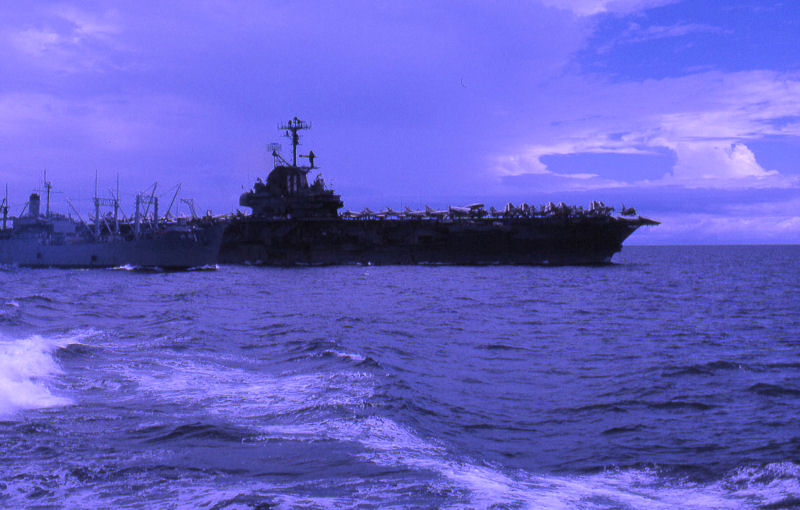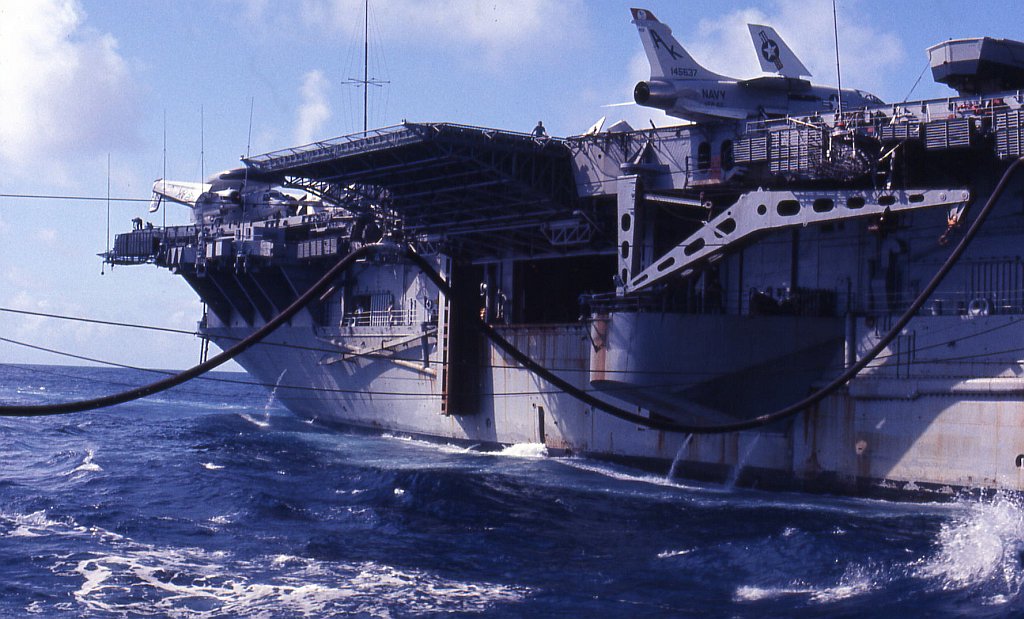 370k | USS Intrepid (CVS-11) refueling from USS Elokomin (AO-55), Mediterranean Sea, 31 May 1967. Seen from USS Fred T. Berry (DD-858). | © Richard Leonhardt | |||||||||||