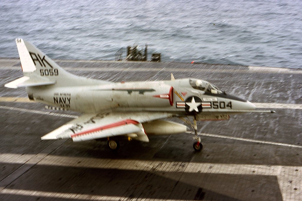 124k | A-4B Skyhawk, BuNo 142833, painted in VA-95 "Green Lizards" scheme, serving aboard Intrepid in 1966. |