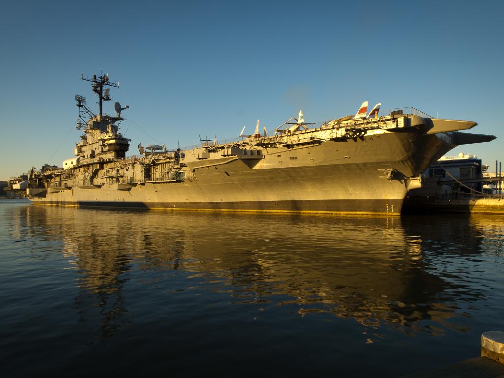 89k | "USS Intrepid aircraft carrier which is home to the Intrepid Sea, Air & Space Museum is seen in the late afternoon on Sunday, Dec. 11, 2011 in New York City. Earlier in the afternoon NASA transferred title and ownership of the space shuttle Enterprise to the museum. The transfer is the first step toward Intrepid receiving Enterprise in the spring of 2012." NASA/Bill Ingalls photo. |