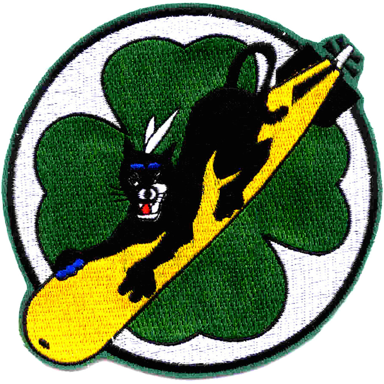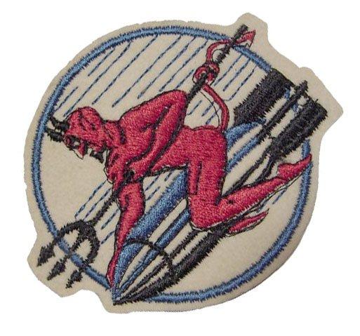 696k | Torpedo Squadron (VT) 13 was attached to USS Franklin (CV-13), November 1943–November 1944, as part of Aircraft Carrier Group (CVG) 13. Patch is a four-leaf clover and a black cat riding a torpedo. |