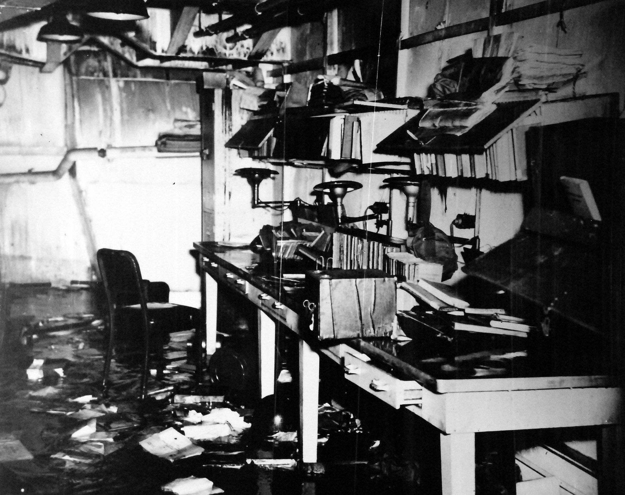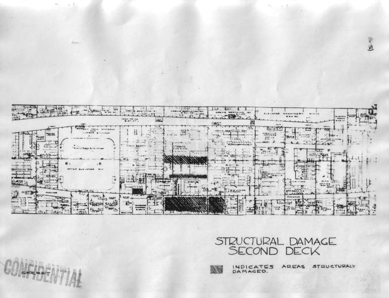 1.25M | USS Franklin (CV-13), Suicide Plane Crash Damage, Samar, 30 October 1944. Navy Dept., Bureau of Ships, War Loss/Damage Report No. 56, United States Navy. |