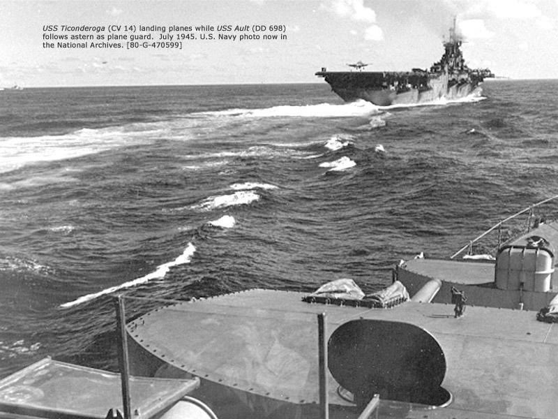 193k | Ticonderoga with a full deck load of planes. Possibly taken off Hampton Roads, Va., 26 June 1944 (see below). Notice channel buoy off her starboard bow. | USN | |||||||||||||||||||||||||||||||||