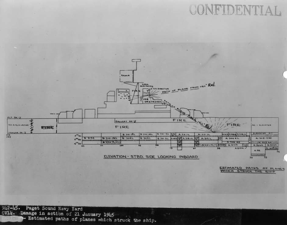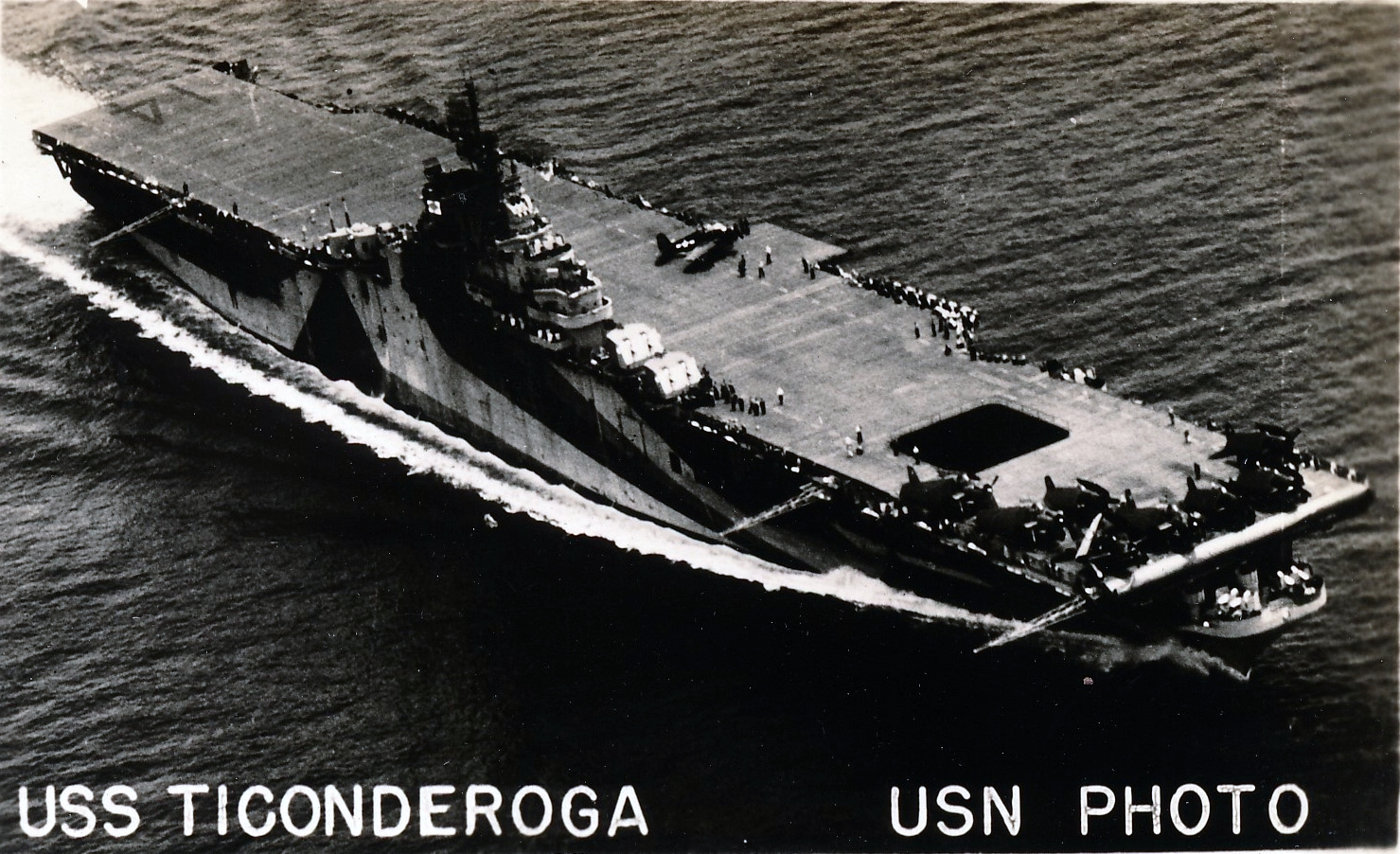 50k | War time image with deck load of aircraft. Ticonderoga was camouflaged in Measure 33, Design 10A from commissioning until early 1945. | USN | |||||||||||||||||||||||||||||||||