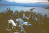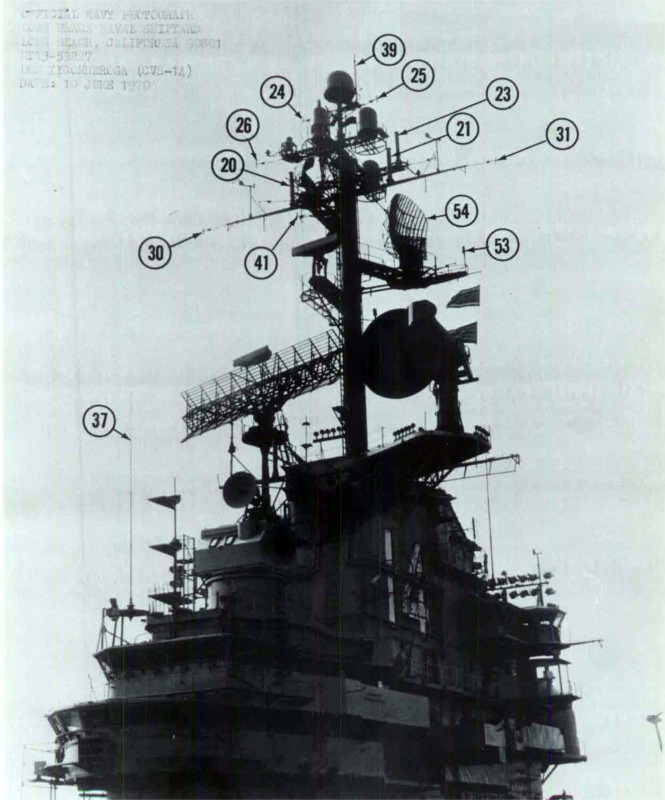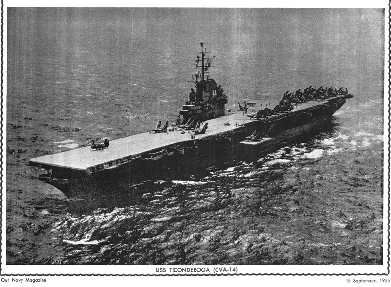 208k | North Island, San Diego, CA, September 3, 1970 — US President Richard M. Nixon passes USS Ticonderoga (CVS-14) on his way to meet Mexican President Gustavo Díaz Ordaz. (Special thanks to Kenneth E. Ratcliff, S-6 Div. aboard Ticonderoga; Denny Segar; and Chester Morris, aboard Ticonderoga 1967–1969, who helped research this photograph.) |