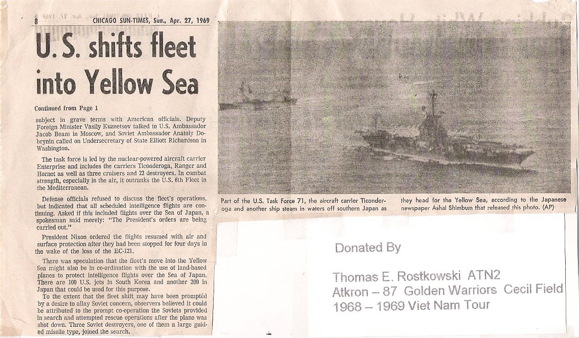 Tom Rostkowski, ATN2, VA-87 "Golden Warriors," 1968–1969 | |||||||||||||||||||||||||||||||||