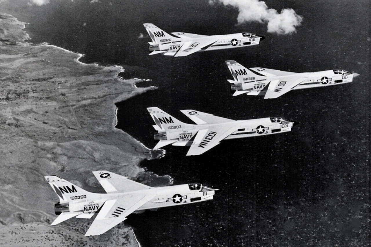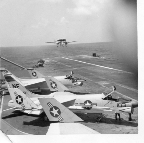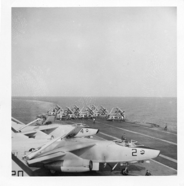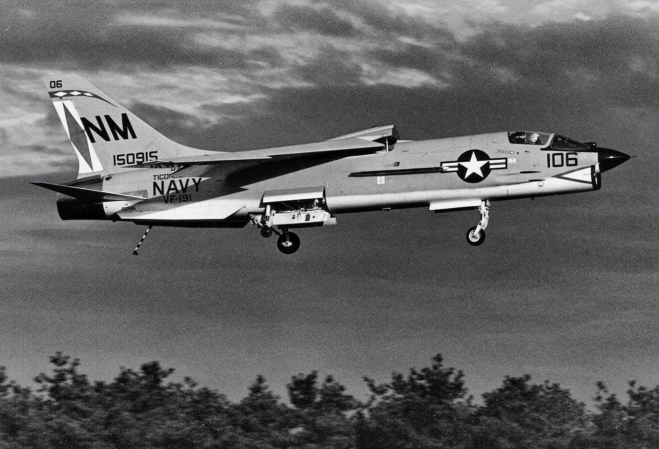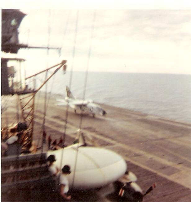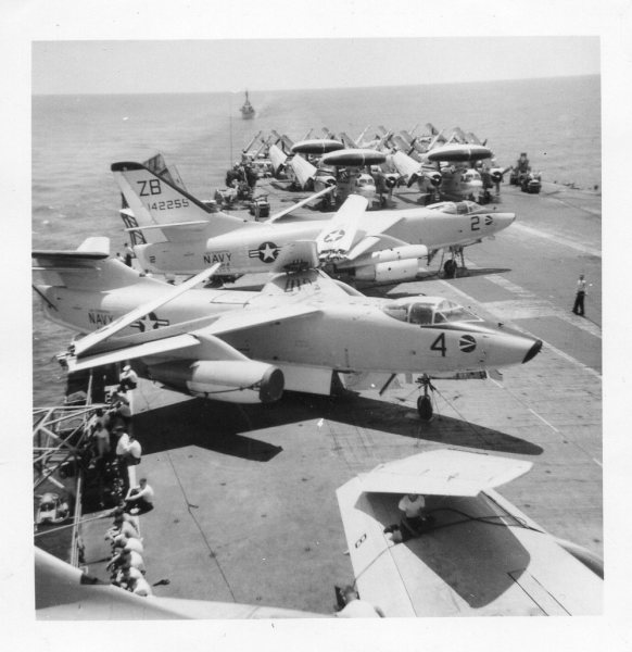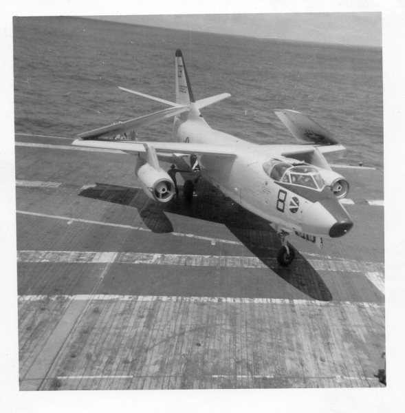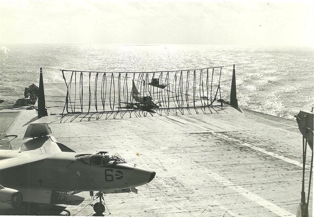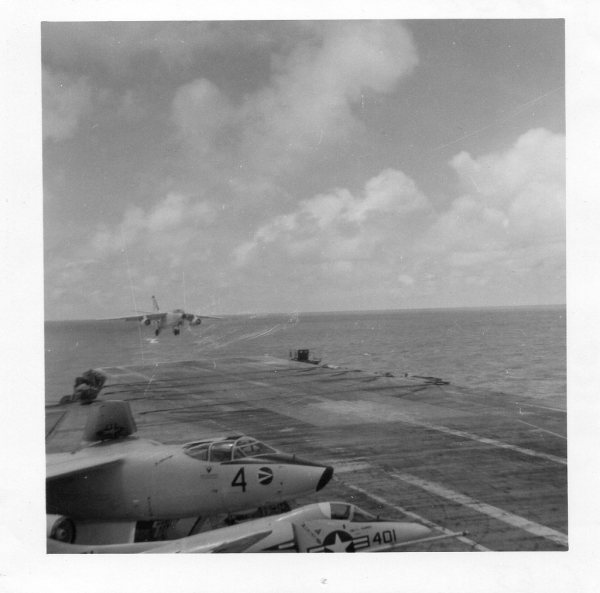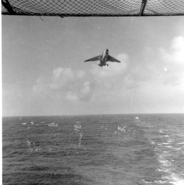38k | VF-162 "Hunters" F-8J Crusader shuttling to cat. |