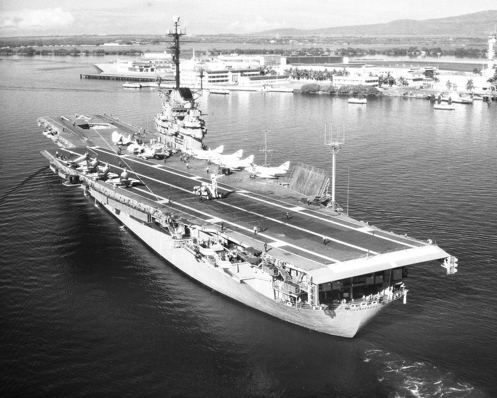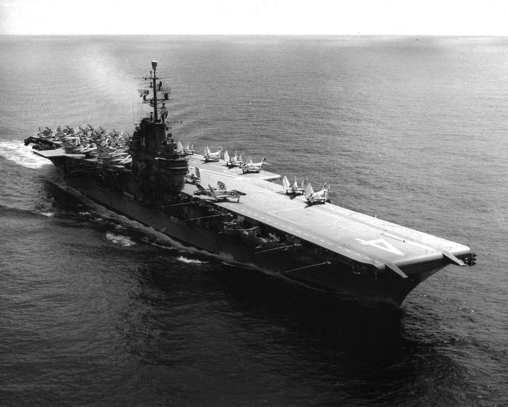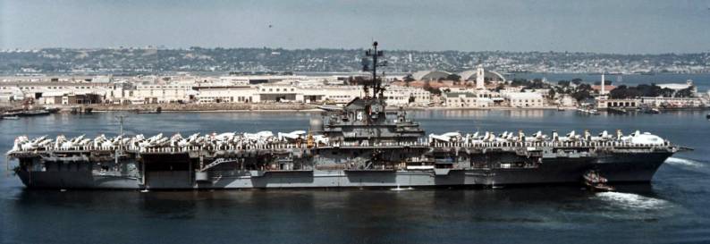 36k | USS Ticonderoga (CVS-14) late in her career, off NAS North Island, San Diego, California. |