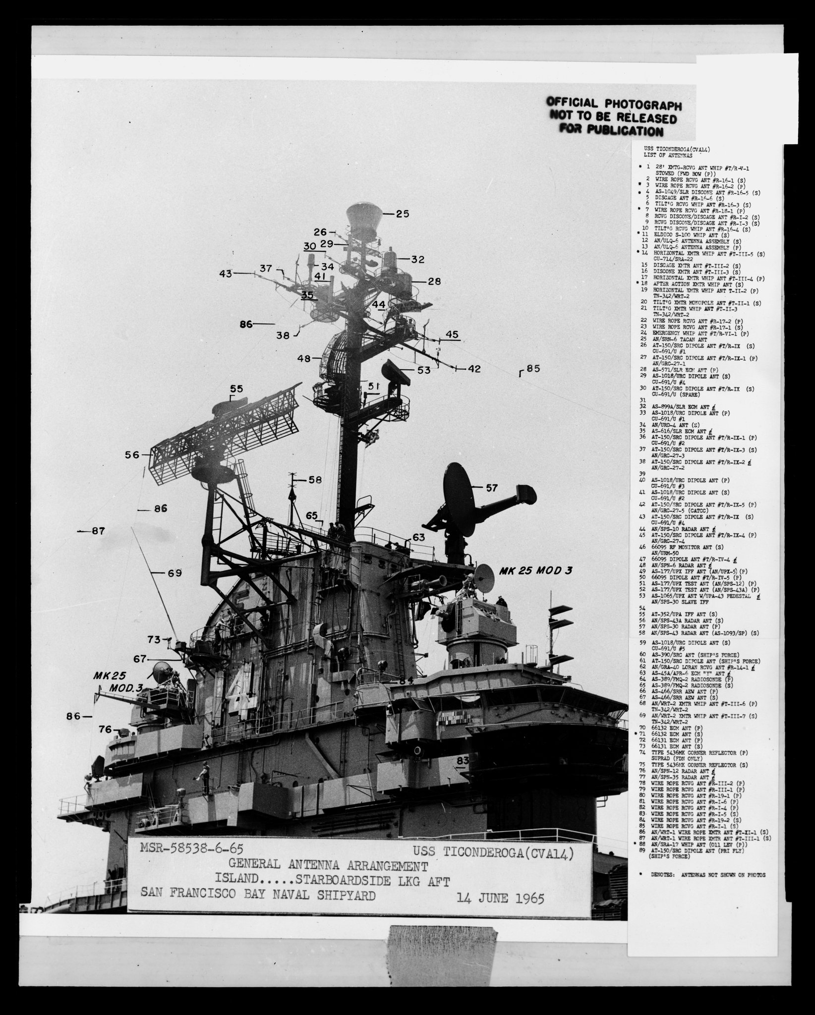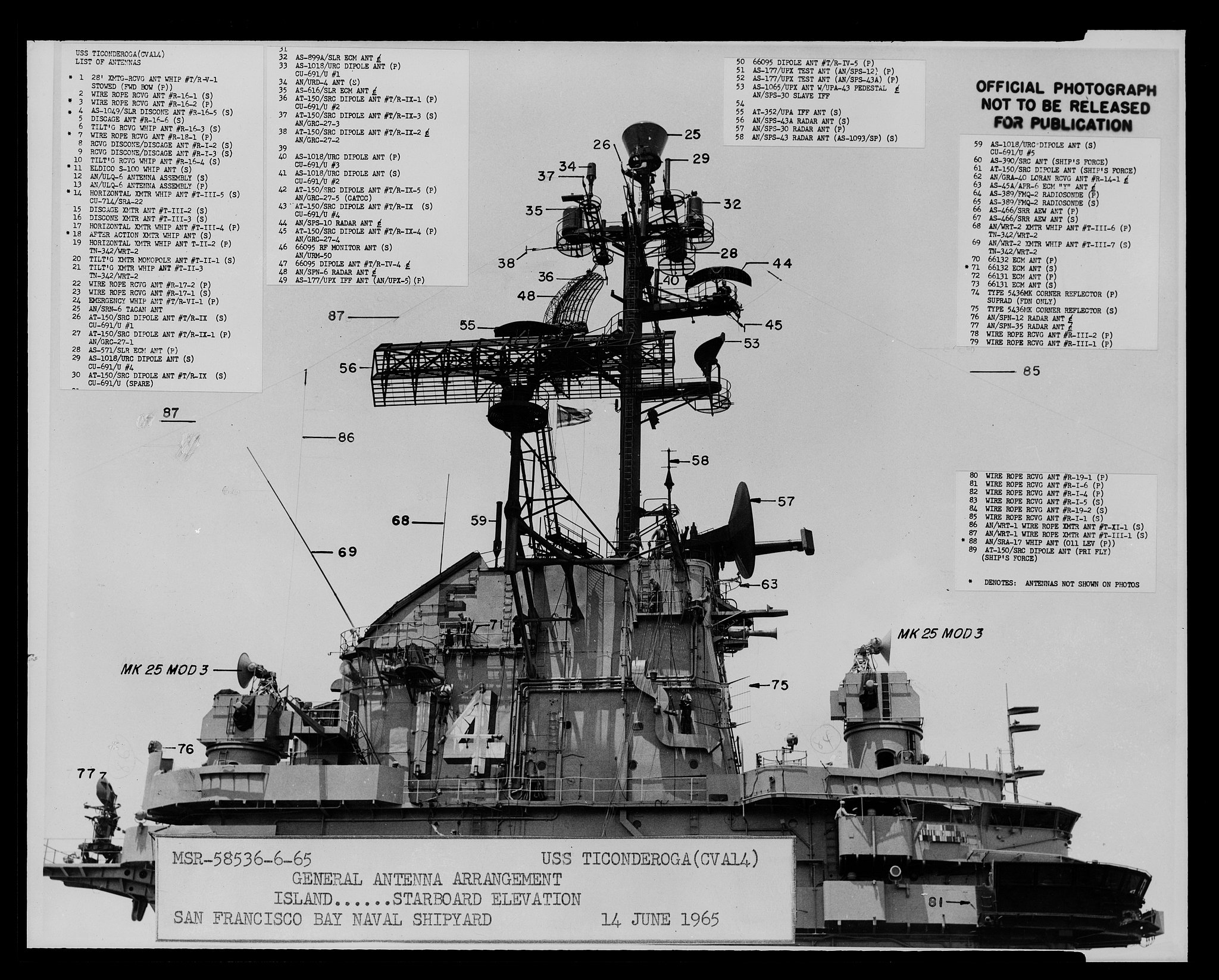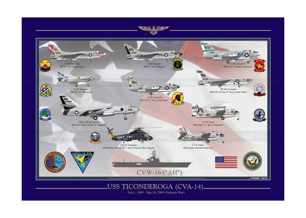 177k | USS Ticonderoga (CVS-14) at sea with ASW Carrier Air Group 59 (CVSG-59), possibly in 1971. Photo by Marine Photos & Publishing Co., Spring Valley, California. |