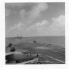 166k | USS Ticonderoga (CV-14) heading for the British West Indies, June 29, 1944. Her flight deck is spotted for recovery of aircraft. This photo came from the Chief of Information, Navy Department, Washington, D.C. |