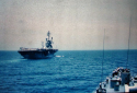 91k | USS Ticonderoga (CVS-14) underway off San Diego, California, after departing Naval Air Station, North Island, for her final Western Pacific deployment, 17 May 1972. Official U.S. Navy Photograph (# USN 1152586). |