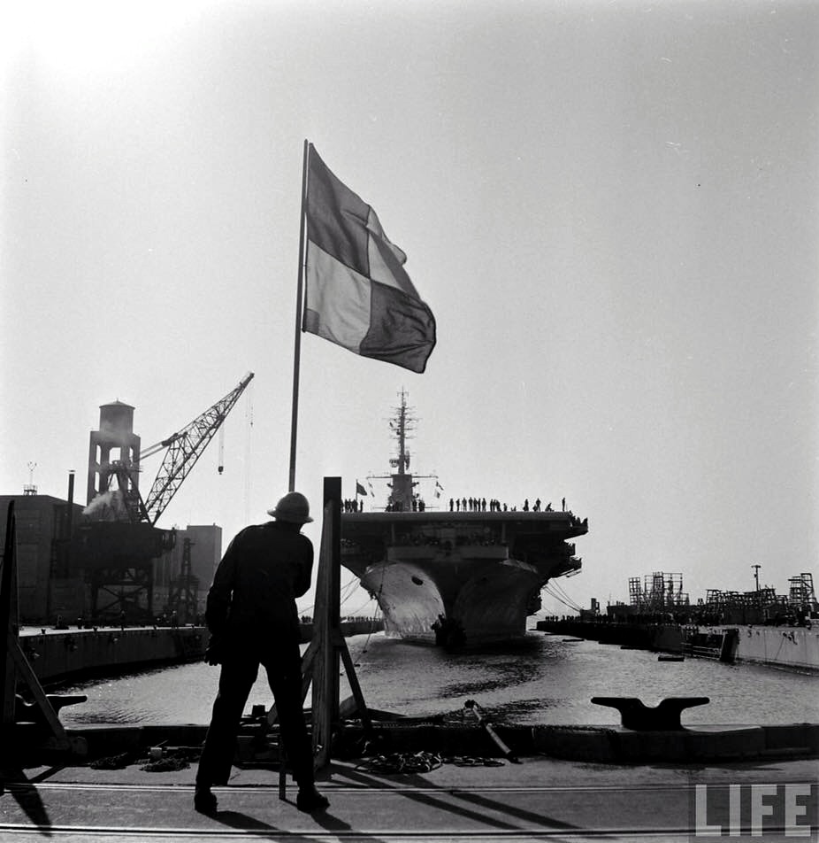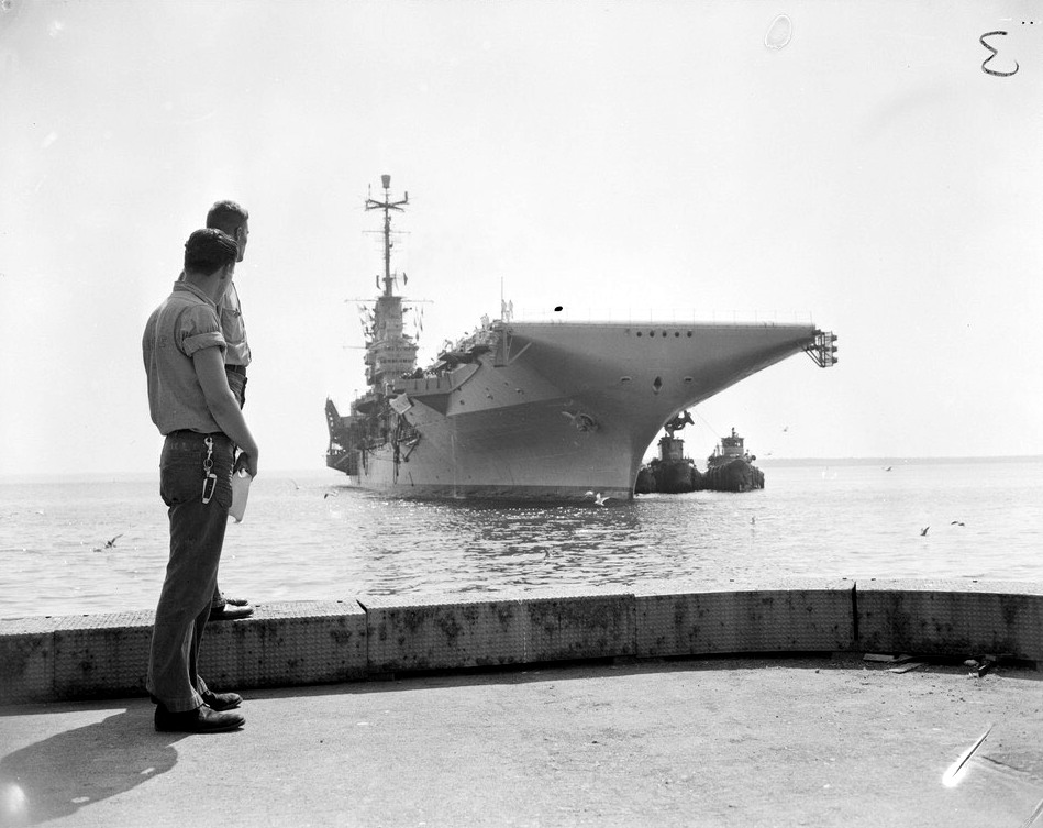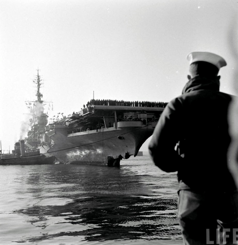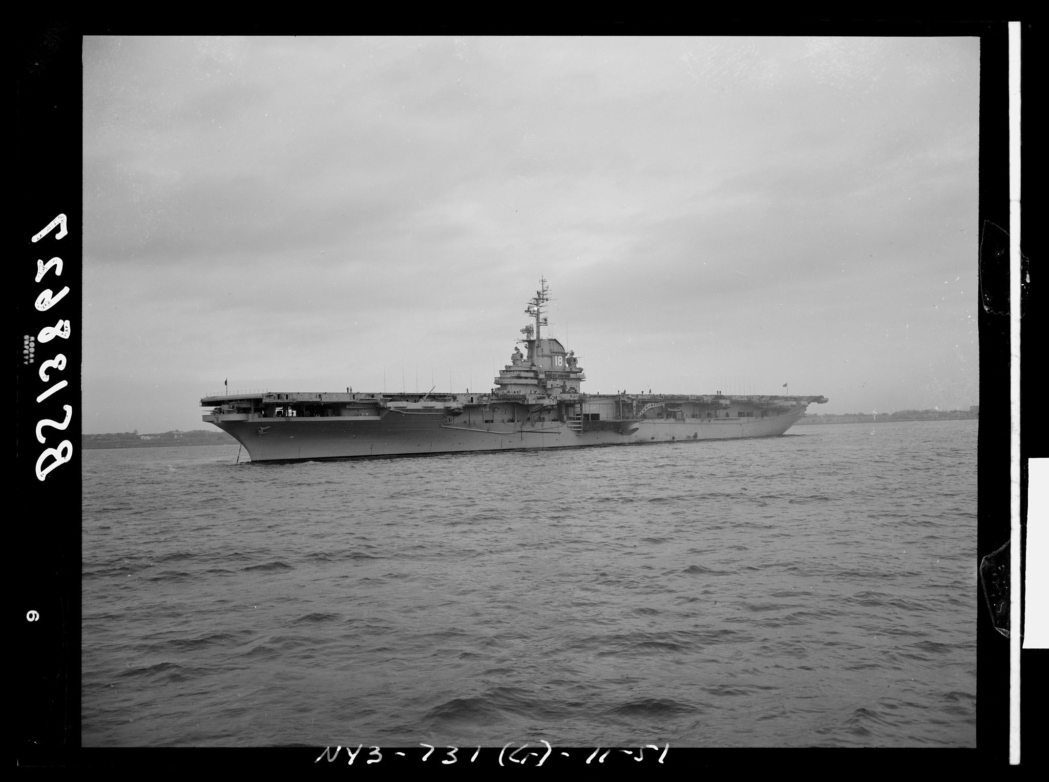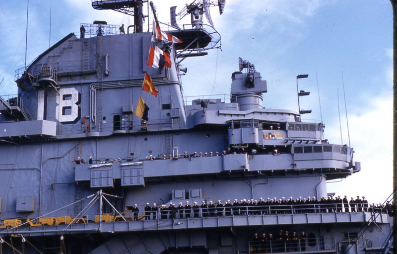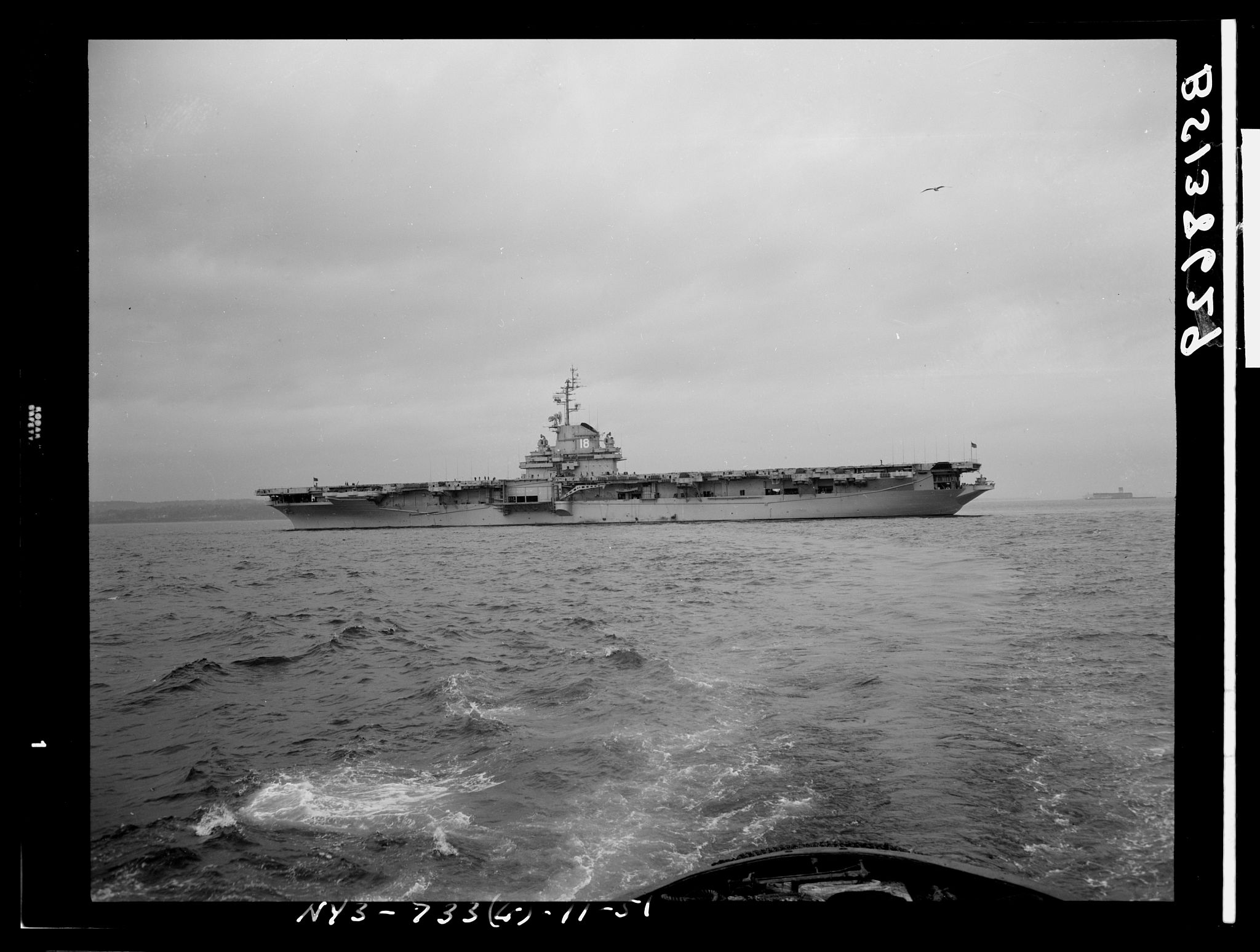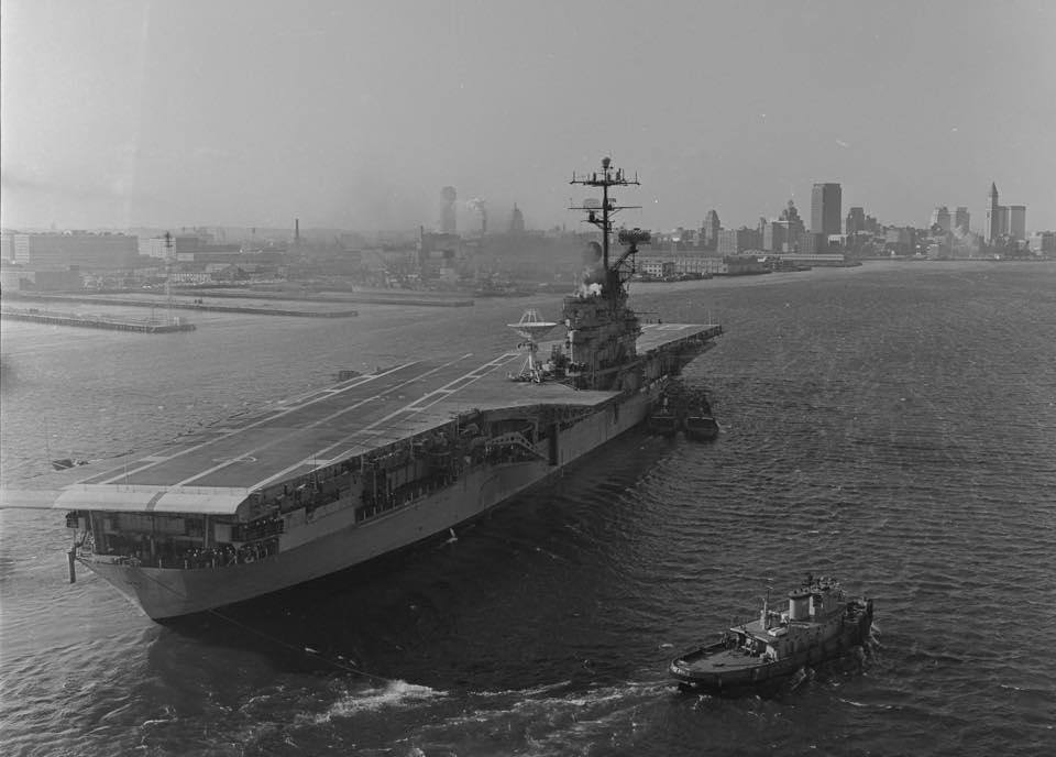 88k | USS Wasp (CVS-18) departing New York, late 1950s-early 1960s. |