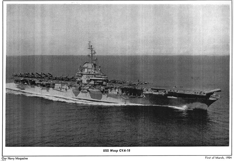 100k | USS Wasp (CVA-18). From Our Navy magazine, First of March, 1954. Photo was taken circa 1951-1952, just after SCB-27A modernization, with Carrier Air Group 1 (CVG-1) aboard. |