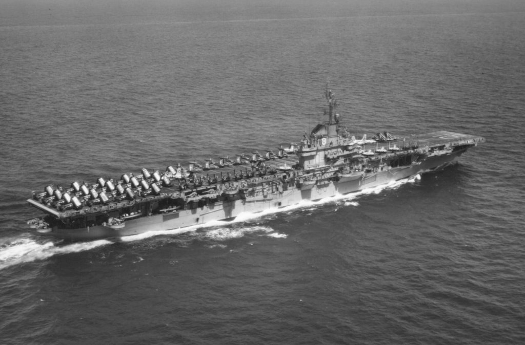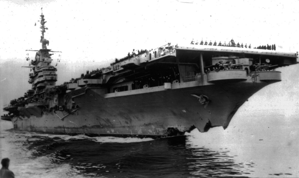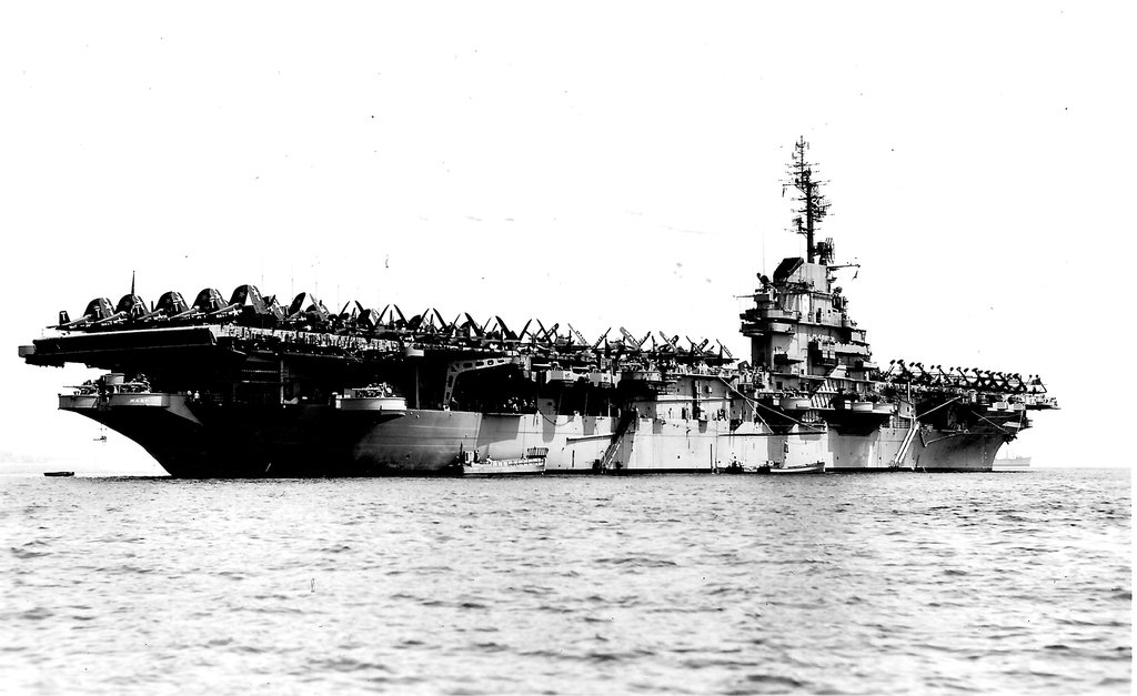 243k | USS Wasp (CV-18) underway with Carrier Air Group (CVG) 1 embarked, 1951–1952. USN photo # 442111. |