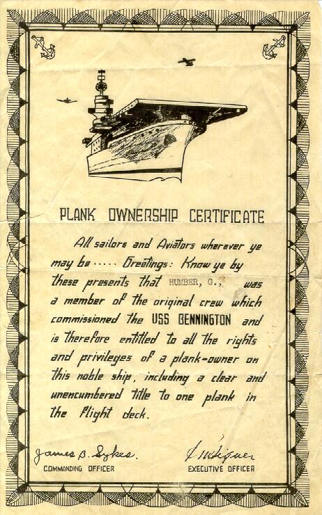 90k | Plank owner certificate for George Humber Sr. | George Humber Jr. | |||||