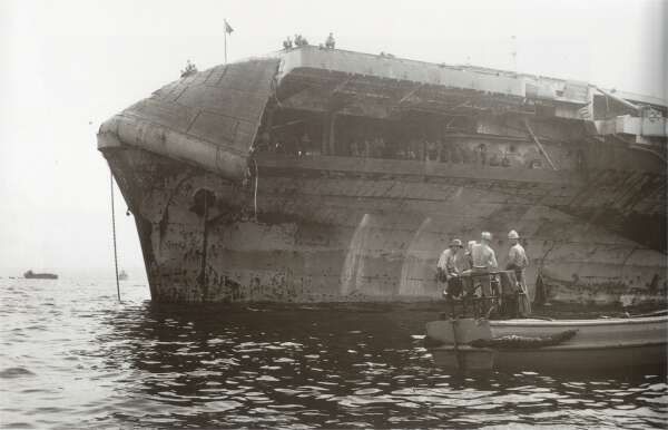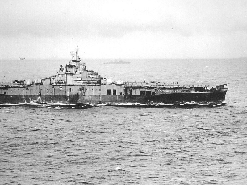 "I took the pictures when [ex-Bennington] was towed to Port Angeles, WA. From flight deck up [everything] was cut up and dropped into the Hangar Bay. Then she was towed out for scrapping." |