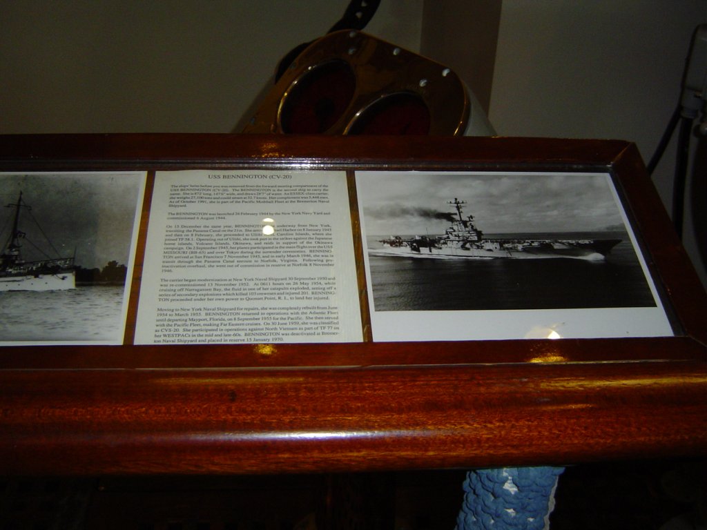 101k | Artifacts from USS Bennington's bridge, preserved at NAS Whidbey Island, Washington (2007). |