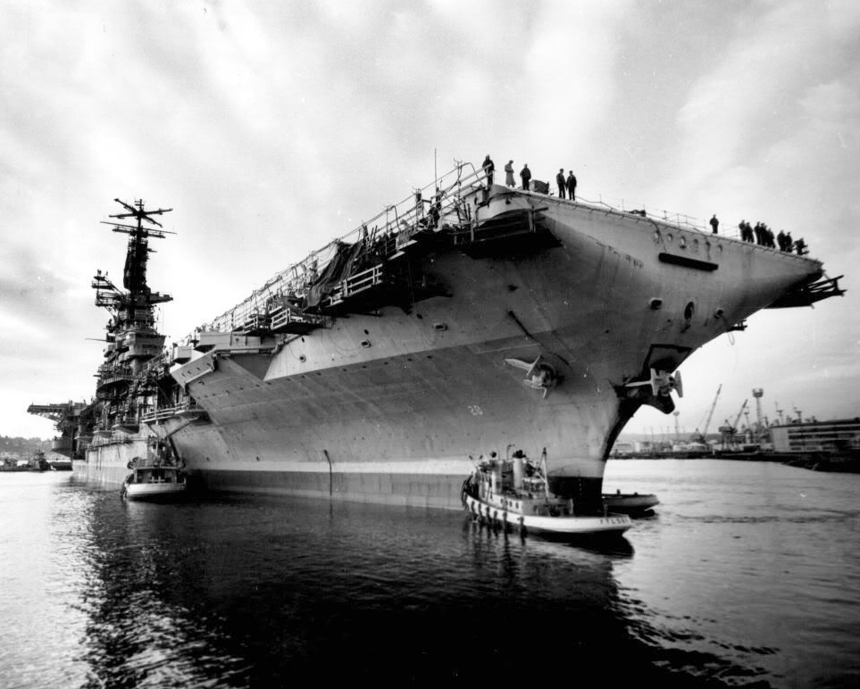 515k | USS Bennington (CVS-20) departing Long Beach Naval Shipyard, California, 10 October 1969, en route to Puget Sound Naval Shipyard, Washington, for inactivation. Official US Navy Photo #1142458. From the Naval Photographic Center, Naval Station, Washington DC. |