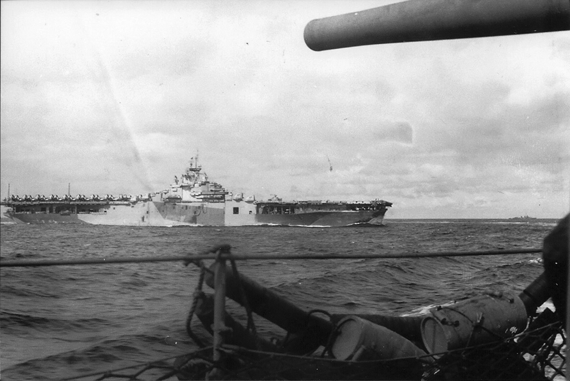 326k | USS Bennington (CV-20) seen from USS Sigsbee (DD-502) in Task Group 58.1, 14 February–13 April 1945. Photo by LT(JG) Gordon Barrett. |