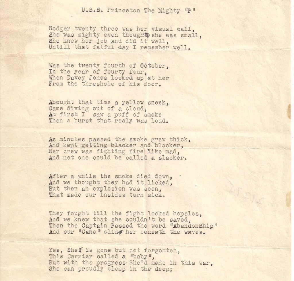 175k | USS Princeton, The Mighty "P", a poem. Typed on onion skin paper. |