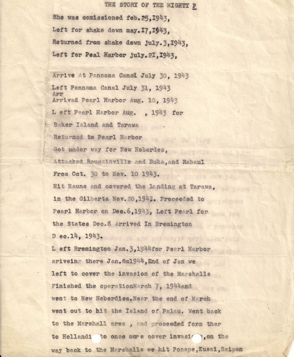 231k | USS Princeton, The Mighty "P", a history. Typed on onion skin paper. |