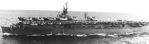 Recommissioned 27 Oct 1948 as a Naval Air Reserve training carrier. Modernized for ASW support in Mar 1950-Feb 1951. Decommissioned to reserve 21 Jan 1955. Reclassified as an "Aircraft Transport" and redesignated AVT-3, 15 May 1959, while in reserve.