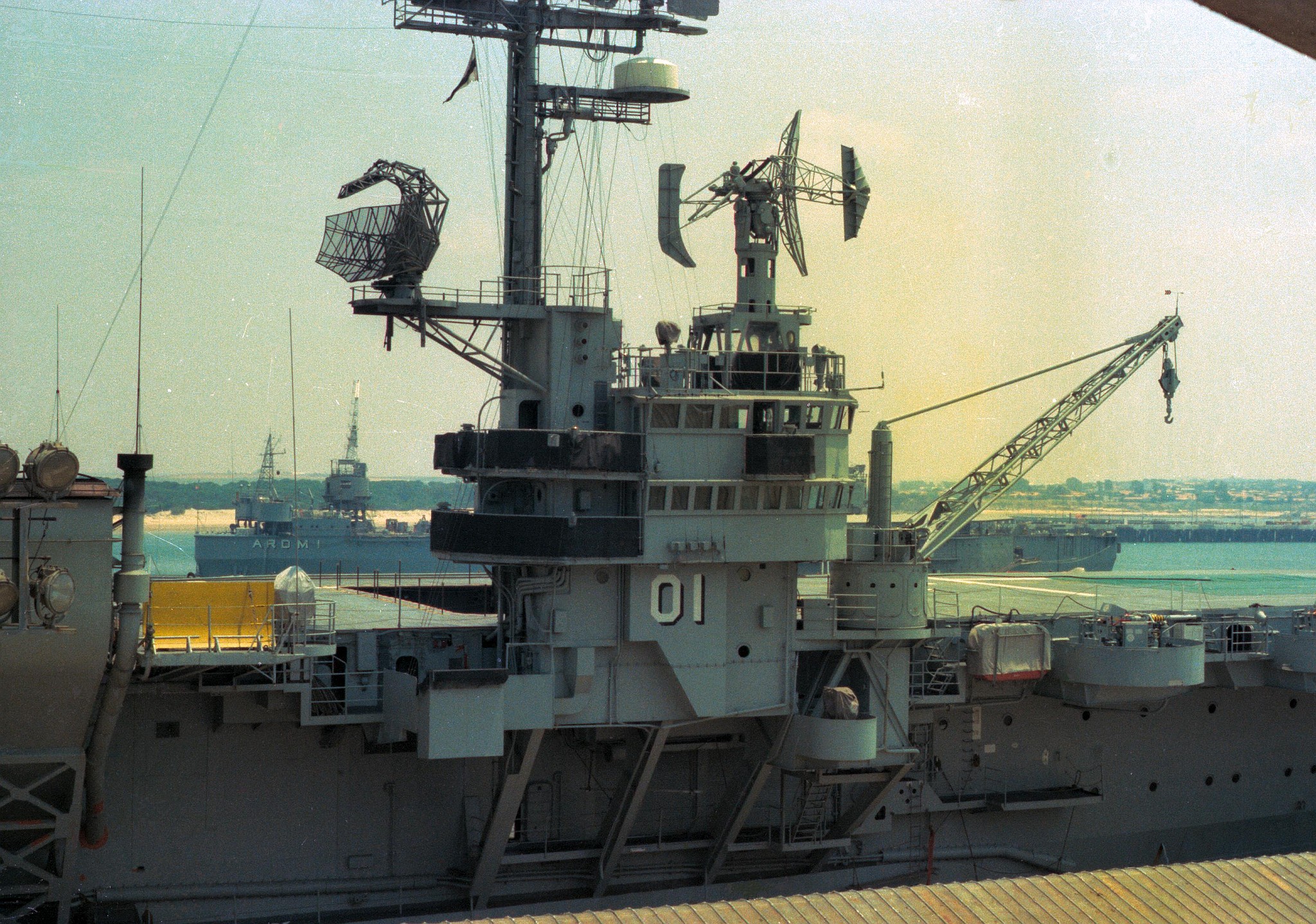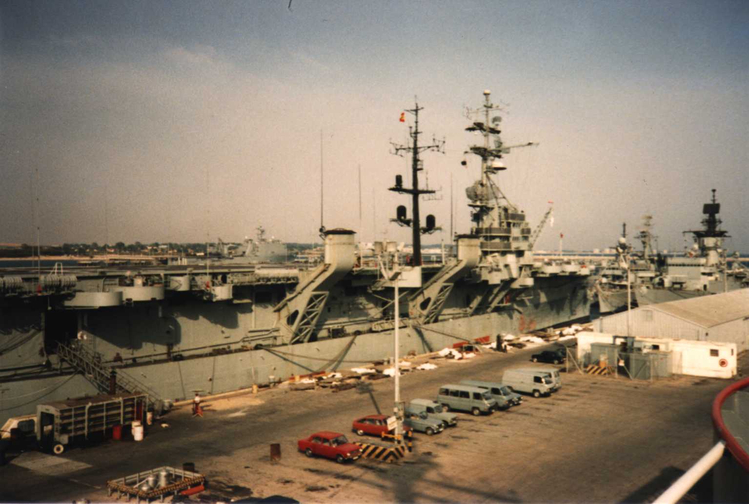 Photos of ex-USS Cabot/SPS Dédalo taken in New Orleans by Robert Webber, 1990 (or possibly earlier).